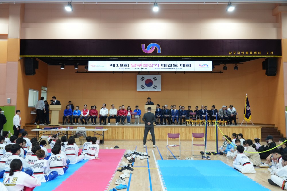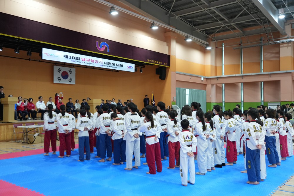 ●내용: 11월 8일(토) 남구국민체육센터 2관 실내체육관에서 '제19회 남구청장기 태권도대회'가 개최되었습니다. 이날 정춘식 남구체육회장님과 오은택 남구청장님, 서성부 남구의회의장님 등 남구의원님들도 참석하여 자리를 빛내주셨습니다. 태권도를 통해 친선과 화합을 다지는 뜻깊은 시간이었습니다.