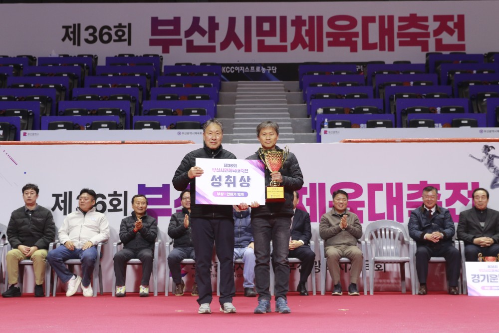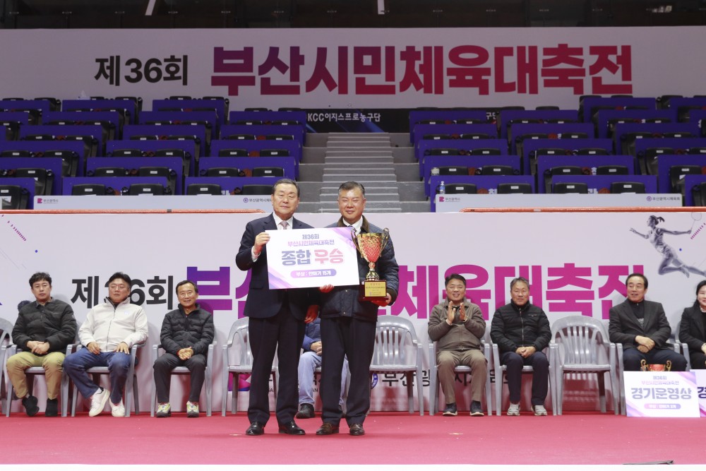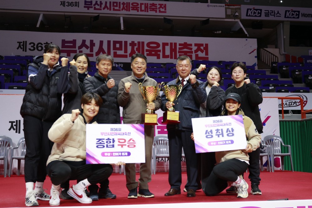 ●내용: 11월 30일(일) 사직실내체육관 등 14개 경기장에서 생활체육 동호인들의 최대 축제인 '제36회 부산시민체육대축전'이 개최되었습니다. 남구 선수단이 대회 역사상 최고 성적으로 종합순위 1위를 차지했습니다. 남구 선수단은 14개 종목에 참가해 축구·줄넘기·그라운드골프 종목에서 우승을 기록하며 상위권 성적을 견인했습니다. 또한 검도·테니스·태권도 종목에서 준우승, 배구·탁구·배드민턴에서 3위, 체조에서 장려를 받는 등 다양한 종목에서 고른 성적을 거둬 종합 우승컵을 들었습니다. 여기에 작년 대비 성적 향상 폭이 가장 큰 기초자치단체에게 주어지는 '성취상'까지 받아 성과와 성장 두 마리 토끼를 모두 잡았습니다.